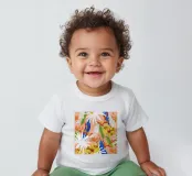 T-shirt per neonati di alta qualitร  realizzata al 100% in cotone biologico certificato.