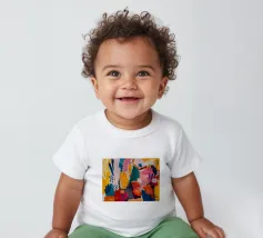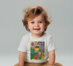 T-shirt per neonati di alta qualità realizzata al 100% in cotone biologico certificato.