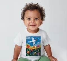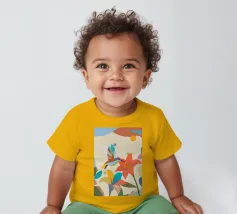 T-shirt per neonati di alta qualità realizzata al 100% in cotone biologico certificato.