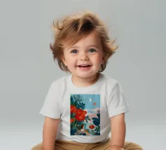T-shirt per neonati di alta qualità realizzata al 100% in cotone biologico certificato.