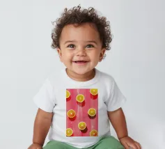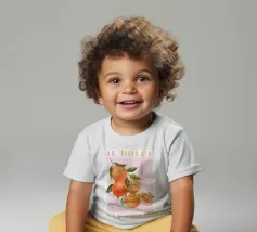 T-shirt per neonati di alta qualità realizzata al 100% in cotone biologico certificato.