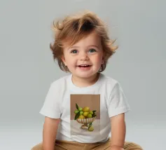T-shirt per neonati di alta qualità realizzata al 100% in cotone biologico certificato.