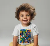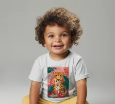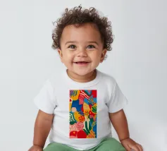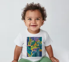 T-shirt per neonati di alta qualità realizzata al 100% in cotone biologico certificato.