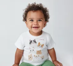 T-shirt per neonati classica e confortevole, con vestibilità morbida e pratici bottoni a pressione.
