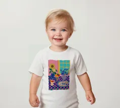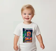 T-shirt per neonati classica e confortevole, con vestibilità morbida e pratici bottoni a pressione.