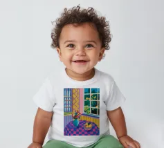 T-shirt per neonati di alta qualità realizzata al 100% in cotone biologico certificato.