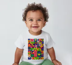 T-shirt per neonati di alta qualità realizzata al 100% in cotone biologico certificato.