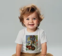 T-shirt per neonati di alta qualità realizzata al 100% in cotone biologico certificato.