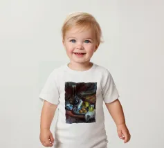 T-shirt per neonati classica e confortevole, con vestibilità morbida e pratici bottoni a pressione.