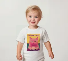 T-shirt per neonati classica e confortevole, con vestibilità morbida e pratici bottoni a pressione.