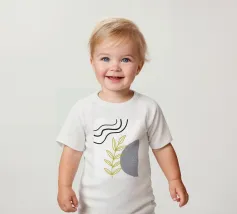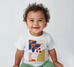 T-shirt per neonati di alta qualità realizzata al 100% in cotone biologico certificato.