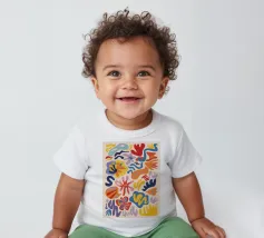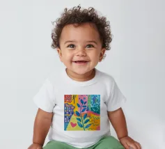 T-shirt per neonati di alta qualità realizzata al 100% in cotone biologico certificato.