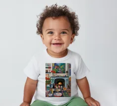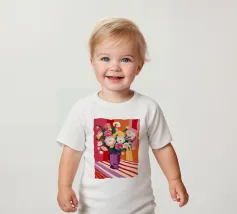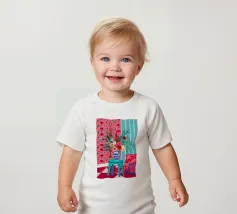 T-shirt per neonati classica e confortevole, con vestibilità morbida e pratici bottoni a pressione.