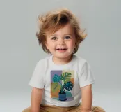 T-shirt per neonati di alta qualità realizzata al 100% in cotone biologico certificato.