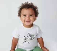 T-shirt per neonati di alta qualità realizzata al 100% in cotone biologico certificato.