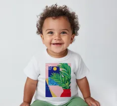 T-shirt per neonati di alta qualità realizzata al 100% in cotone biologico certificato.