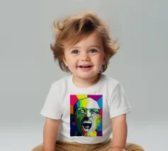 Un ritratto vibrante e geometrico di Sinead O'Connor in stile WPAP, caratterizzato da forme audaci e angolari e da un'impressionante gamma di colori vivaci e contrastanti. L'opera cattura i suoi tratti iconici, come la testa rasata, gli occhi penetranti e la forte espressione facciale, utilizzando blocchi di colore nitidi e frammentati. La composizione enfatizza la profondità e l'emozione mantenendo l'estetica pop-art cubista distintiva di WPAP, creando un tributo visivamente dinamico e moderno alla leggendaria cantante.