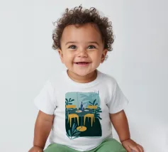 T-shirt per neonati di alta qualità realizzata al 100% in cotone biologico certificato.
