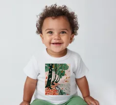 T-shirt per neonati di alta qualità realizzata al 100% in cotone biologico certificato.