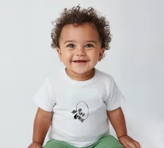 T-shirt per neonati di alta qualità realizzata al 100% in cotone biologico certificato.