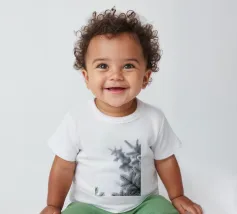 T-shirt per neonati di alta qualità realizzata al 100% in cotone biologico certificato.