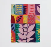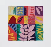 Una griglia di diversi motivi astratti e geometrici in una tavolozza di rosa, rosso e verde acqua crea un design patchwork moderno, artistico e decorativo.