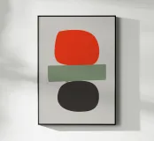 Balancing Shapes No. 2" è un'opera d'arte minimalista con una composizione chiara e una tensione tranquilla. Tre forme semplici e organiche in rosso deciso, verde tenue e nero profondo creano un equilibrio moderno tra energia e quiete. Una dichiarazione minimalista per gli ambienti che devono emanare forza e chiarezza. Perfetto per: Sale studio, soggiorni, pareti di gallerie o studi creativi.