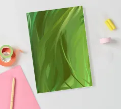 Questo disegno astratto presenta forme e gradienti verdi fluidi e scorrevoli, creando un effetto vibrante e rilassante. Ideale per l'uso come sfondo o sfondo del desktop.