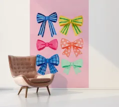 Un'illustrazione elegante con una collezione di papillon colorati, che celebra l'eleganza e il fascino senza tempo.