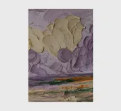 Un paesaggio astratto o altamente stilizzato dominato da un drammatico e vorticoso paesaggio nuvoloso con sfere celesti o forme solari, reso in un impasto strutturato con toni dorati e tenui. La scena è eterea, onirica ed evoca un senso di meraviglia cosmica.