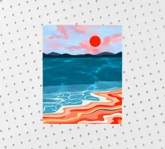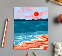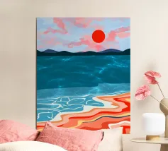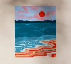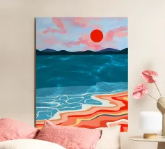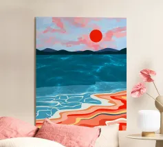 "Tonalità costiere: Sand and Sea Melody" cattura la serena bellezza di un litorale tranquillo, mescolando i toni morbidi della sabbia con il blu rilassante delle onde dell'oceano. Questo paesaggio marino minimalista evoca tranquillità, perfetto per portare un tocco di natura in qualsiasi spazio.