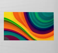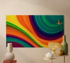 Onde luminose di colore in varie tonalità si intrecciano per formare un'opera d'arte astratta dinamica. Le linee decise e le curve morbide creano un'esperienza visiva energica.