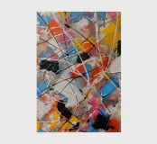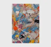 Questo dipinto astratto in acrilico cattura l'energia dinamica della tecnica dell'action painting, ispirata a Pollock. Vibranti schizzi di colore in rosso, giallo, blu e bianco creano linee fluide e motivi complessi che trasmettono movimento e profondità.