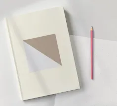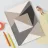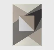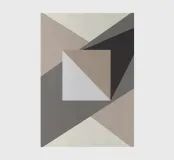 Forme geometriche in toni neutri creano una composizione astratta con triangoli sovrapposti e un quadrato centrale. Il gioco di luci e ombre aggiunge profondità al design minimalista.