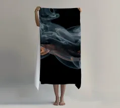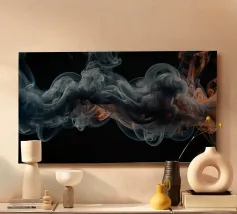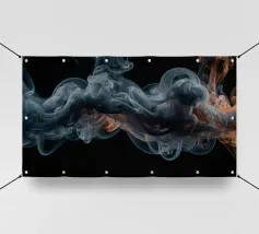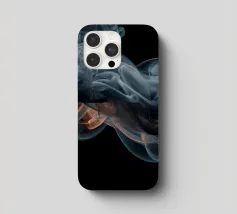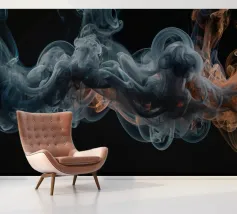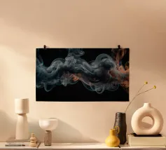 Morbidi viticci di fumo nei toni del blu e dell'arancio si intrecciano con grazia, creando uno spettacolo ipnotico su uno sfondo nero in condizioni di scarsa illuminazione.