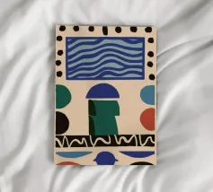 Un moderno motivo astratto con foglie stilizzate, zigzag e altre forme organiche in una tavolozza di colori terrosi. La composizione è un disegno equilibrato ed elegante, perfetto per l'arredamento contemporaneo.