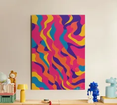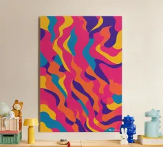 Un audace motivo astratto con un tocco di energia dinamica che simboleggia il movimento e la fluidità. Colori vivaci che evocano temi come l'acqua, la vita e il movimento. Una fusione innovativa di tradizione e modernità per interni contemporanei e minimalisti. Un linguaggio visivo unico che supera i confini culturali.