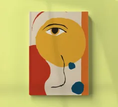 Un ritratto astratto moderno e minimalista creato con linee fluide e continue, che raffigura un volto dall'espressione dolce in una tavolozza di colori terrosi.