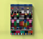 Una composizione astratta presenta una serie di forme geometriche e di colori vivaci disposti a griglia. Blocchi di colore distintivi sono intervallati da elementi lineari, creando un design visivamente dinamico e moderno.