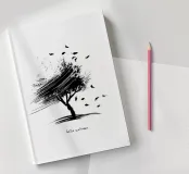 Questa elegante opera d'arte cattura l'essenza dell'autunno con un albero grazioso e foglie cadenti, disegnate in uno stile minimalista di pennellate in bianco e nero. È possibile personalizzare il testo per renderlo proprio, ma l'opera d'arte rimane fissa per preservare il suo carattere unico.