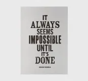 Elevate il vostro spazio con questa potente stampa tipografica. Con l'intramontabile saggezza "It Always Seems Impossible Until It's Done" (Sembra sempre impossibile finché non viene fatto) in caratteri tipografici neri e distorti su un morbido sfondo grigio, questo pezzo emana un fascino vintage e un incoraggiamento. Perfetto per uffici, aree studio o qualsiasi altro spazio che necessiti di una spinta motivazionale. La stampa di alta qualità mette in evidenza l'intricata texture della stampa tipografica, creando un'esperienza visiva tattile. Abbracciate la perseveranza e la determinazione con questa elegante opera d'arte che serve come promemoria quotidiano per superare le sfide e raggiungere i vostri obiettivi.