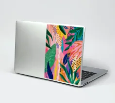 Foglie tropicali allungate scorrono verso l'alto attraverso un delicato bagliore rosa, creando un giardino verticale segreto.