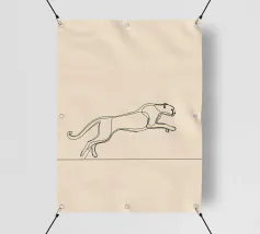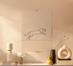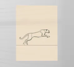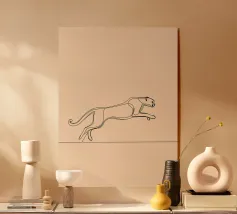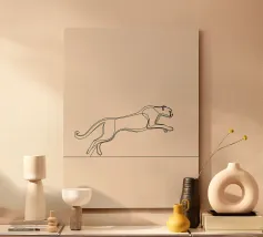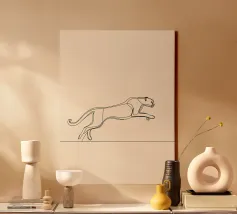 Dinamica line art minimalista di un leopardo in corsa, perfetta per gli appassionati di fauna selvatica e per le decorazioni ispirate alla natura. Un'aggiunta audace ed energica a qualsiasi spazio.