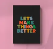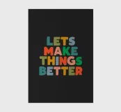 Portate una ventata di positività nel vostro ambiente con questa vivace stampa artistica disegnata a mano con la scritta "Lets Make Things Better" in verde, blu, giallo, arancione e rosa su uno sfondo nero intenso. Questo disegno giocoso ed esaltante è perfetto per ravvivare qualsiasi ambiente ed è un regalo gradito per i compleanni, gli addii al nubilato o il Natale. Ideale per uffici, soggiorni o studi creativi, questa stampa ispira ottimismo e creatività, aggiungendo un tocco audace e contemporaneo al vostro arredamento.