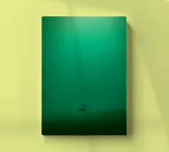 Un albero solitario si erge ai margini di un tranquillo paesaggio da sogno, dove il cielo di colore verde acqua si fonde con un orizzonte beige che sussurra. L'immobilità minimalista di quest'opera d'arte evoca solitudine, introspezione e la sottile forza della natura sospesa nel tempo.