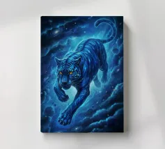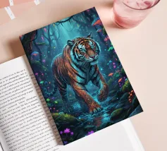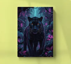 Una pantera nera, circondata da scintille soprannaturali, attraversa una giungla immersa in una luce mistica. Questo disegno fonde forza animale e magia visiva per creare una scena ipnotica e fiabesca. Ideale per un arredamento intenso, misterioso e fantastico, questo disegno delizierà gli appassionati di felini, natura selvaggia e mondi immaginari. È accattivante, vibrante e profondamente incantevole.