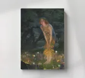 La vigilia di mezza estate (1908) di Edward Robert Hughes è un capolavoro luminoso e incantevole della tarda arte preraffaellita. Questa scena magica raffigura una giovane donna in una radura al chiaro di luna circondata da fate eteree, che risplendono di luce soffusa e dettagli delicati. L'uso magistrale di Hughes del colore e della luminosità crea un'atmosfera romantica e onirica che cattura la bellezza e il mistero della notte di mezza estate. Una riproduzione di alta qualità porta a casa vostra questa fantasia senza tempo, perfetta per gli amanti della mitologia, dell'arte romantica e delle immagini fiabesche.