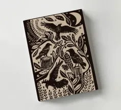Questa silhouette mostra un albero nodoso e consumato dalle intemperie, con fili di muschio pendenti su cui sono appollaiati diversi corvi. Due lanterne pendono dai rami, mentre i pipistrelli volano sullo sfondo. Il disegno trasmette un'atmosfera misteriosa e un po' cupa che ricorda vecchie leggende o mondi fantastici. Ideale per gli appassionati di stile gotico, estetica fiabesca o decorazioni di Halloween. Il contrasto minimalista tra il nero e lo sfondo chiaro aumenta l'effetto drammatico.