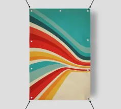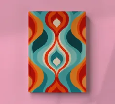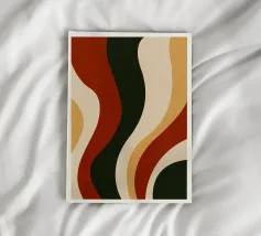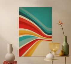 Sensazione di viaggio astratto-visivo: questo poster rende omaggio al design retrò degli anni '70 e le sue curve dinamiche di colore ricordano le autostrade infinite, la libertà e l'agio californiano. La texture volutamente invecchiata aggiunge un fascino nostalgico, mentre il gioco di turchesi, rossi e gialli solari porta un'energia ottimistica in qualsiasi ambiente, ideale sia per spazi di lavoro creativi che per pareti di soggiorni eleganti.