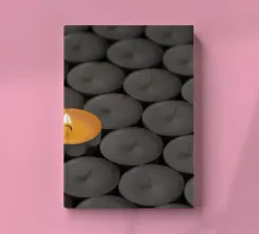 Quest'opera d'arte mostra una delicata sezione di un giardino zen - una composizione meditativa di linee di ciottoli in filigrana che attraversano diagonalmente la superficie del quadro. I ciottoli sono fini, grigi e uniformemente distribuiti, creando un disegno calmo e quasi ipnotico. Ogni linea è stata chiaramente tracciata con cura e la precisione riflette l'idea di ordine interiore e concentrazione.